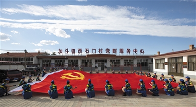 6月17日,廣靈縣加斗鎮(zhèn)56位巧手繡娘舉起她們親手縫制的100平方米巨大黨旗,向黨的百年華誕獻(xiàn)禮。
